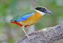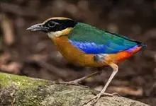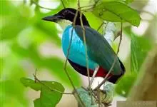 蓝翅八色鸫是雀形目八色鸫科的鸟类。体长17-20厘米,体重类约48-70克,体型圆胖,尾短,腿长,以身体具有红、绿、蓝、白、黑、黄、褐、栗等鲜艳夺目,丰富艳丽的色彩而得名,是很有观赏价值的鸟类。主要…全部>>