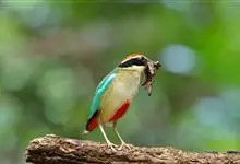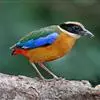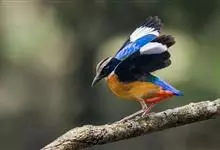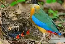 蓝翅八色鸫是雀形目八色鸫科的鸟类。体长17-20厘米,体重类约48-70克,体型圆胖,尾短,腿长,以身体具有红、绿、蓝、白、黑、黄、褐、栗等鲜艳夺目,丰富艳丽的色彩而得名,是很有观赏价值的鸟类。主要…全部>>