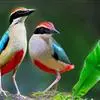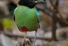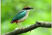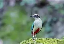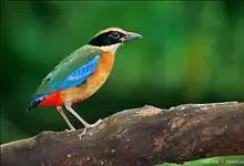 绿胸八色鸫:是雀形目八色鸫科的鸟类,共有12个亚种。体长为16-18厘米,体重65-69克。体型圆胖,尾短,腿长。头黑,上体绿色,两翼深色而具白色斑纹,头顶至后枕深褐,胸及腹部苹果绿,臀亮红。…全部>>