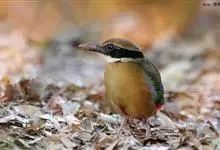 栗头八色鸫又叫锅巴雀,体长为24-26厘米,体重100-135克,是雀形目八色鸫科的鸟类。体型圆胖,尾短,腿长,常在森林底层或低植被中找食无脊椎动物。叫声简单哀婉。…全部>>