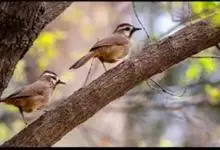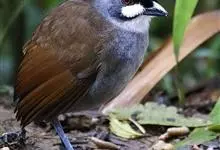白颊噪鹛是雀形目噪鹛科噪鹛属鸟类,又称土画眉、小画眉、小噪鹃。成鸟额至头顶栗褐色,长眉纹、眼先和颊纹棕白色,眼后至耳羽深褐色,…全部>>