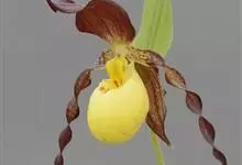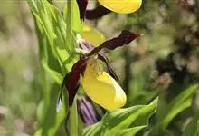 黄花杓兰:植株通常高30-50厘米,具粗短的根状茎。茎直立,密被短柔毛,基部具数枚鞘,鞘上方具3-6枚叶。叶片椭圆形至椭圆状披针形。花序顶生,通常具1花,罕有2花;花黄色,有时有红色晕,…全部>>
