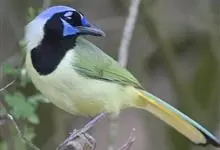 冠蓝鸦:体长22-30厘米,体重70-100克,翼展34-43厘米。顶冠明显,羽色为薰衣草蓝或淡蓝色,颈后、翅膀内侧、尾羽内侧和面部为白色。腹部为米白色,颈部有黑色领环,延伸至面部两侧,…全部>>