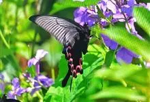 蓝凤蝶,Papilio protenor Cramer,凤蝶科凤蝶属的一种昆虫。翅展95~120mm。翅黑色,有靛蓝色天鹅绒光泽。雄蝶后翅正面前缘有黄白色斑纹,…全部>>