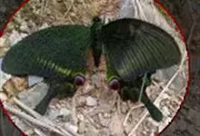 绿带翠凤蝶,又名深山凤蝶,为凤蝶科凤蝶属下的一种。分布于韩国、日本、中国台湾、中国大陆等地。翅黑色,满布金绿色鳞片。前翅亚缘具黄绿色横带纹。后翅外缘有6个略呈新月形的红斑,…全部>>