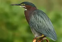 绿鹭:是鹳形目鹭科绿鹭属鸟类。体型小,头顶黑,枕冠亦黑色,上体蝉灰绿色,下体两侧银灰色;前额至后枕及冠羽墨绿色,眼后有一白斑,颊纹黑色;颚纹白色,后颈、颈侧和体侧烟灰色;背部披灰绿色矛状长羽,…全部>>