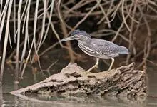 美洲绿鹭共有5个亚种。体长约48厘米,翼展62-70厘米,体重240克。头顶和枕部冠羽具辉墨绿色。眼下方有一黑色条纹延达颈侧。颈及背部蓑羽灰色。翼和尾黑色,翅缘白色。翼上及羽绿色,羽缘白色。…全部>>