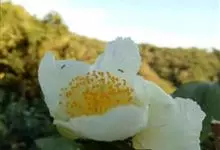凹脉金花茶,是山茶科山茶属的灌木;嫩枝有短粗毛,老枝变秃;叶革质,椭圆形,先端急尖,基部阔楔形或窄而圆,上面深绿色,干后橄榄绿色,有光泽,下面黄褐色,被柔毛,有黑腺点,边缘有细锯齿;花腋生,花柄粗大,…全部>>