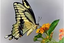 金凤蝶,是鳞翅目凤蝶科凤蝶属动物。金凤蝶为中型凤蝶,翅展70-84毫米,翅背面底色黑褐色,翅脉黑色,翅室具黄斑;前翅背面基部呈暗黄色,亚外缘为黑色,内具一列小黄斑;后翅背面亚外缘区具黑宽边,…全部>>