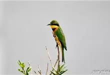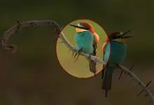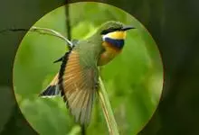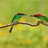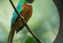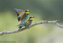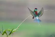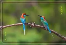 栗喉蜂虎是蜂虎科蜂虎属的鸟类。有热带鸟类羽毛艳丽的特征:喉部是栗红色的,黑色的过眼纹,翅膀和背部是绿色的,尾翼是蓝色的,飞行时翅膀下面的羽毛是橙黄色的,在阳光的照射下,它们全身闪烁着金属般的艳丽光泽,…全部>>