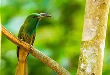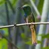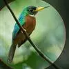 蓝须夜蜂虎是佛法僧目、蜂虎科的鸟类,体长约30厘米,是绿色林栖型蜂虎,蓝色的胸羽蓬松,嘴厚重而下弯。成鸟顶冠淡蓝,腹部棕黄带绿色纵纹。尾羽腹面黄褐。亚成鸟全身绿色。喉、胸部中央的羽甚长和亮色;该物种…全部>>