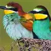 蓝喉蜂是蜂虎科蜂虎属鸟类。体长26-28厘米,嘴长而弯曲,有明显细长的中央尾羽。头部、颈部和背部为巧克力色,有黑色眼纹。喉部、腰部和尾羽为蓝色。腹部和两翼为绿色。幼鸟外观似成鸟,头部、颈部和背部为绿色,…全部>>