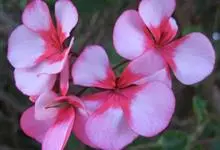 蔓性天竺葵学名盾叶天竺葵 Ait.)是牻牛儿苗科天竺葵属植物。多年生攀缘或缠绕草本,长40-100厘米,茎具棱角,多分枝,叶互生,略呈肉质,伞房花序腋生,有花数朵,花冠洋红色,上面2瓣着深色条纹,…全部>>