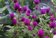 千日红,是苋科千日红属的一年生直立草本植物;茎粗壮,有分枝,枝略成四棱形,有灰色糙毛,幼时更密,节部稍膨大;叶片纸质,长椭圆形或矩圆状倒卵形;花果期6-9月。花色艳丽有光泽,花干后而不凋,经久不变,…全部>>