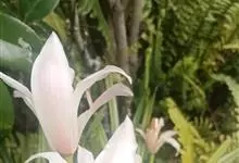姜花又名野姜花。是姜科姜花属的多年生草本植物,茎高1-2米;叶片长圆状披针形或披针形,叶面光滑,叶背被短柔毛;穗状花序顶生,椭圆形,花芬芳,白色;蒴果卵状三棱形,微黄绿色;种子鲜红色,具橘红色的假种皮。…全部>>