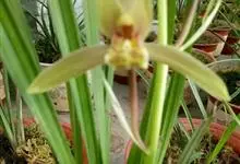 建兰 Sw.):地生植物;假鳞茎卵球形,包藏于叶基之内。叶2-6枚,带形,有光泽,长30-60厘米,宽1-2.5厘米。花葶从假鳞茎基部发出,直立,一般短于叶;总状花序具3-9朵花;花常有香气,…全部>>
