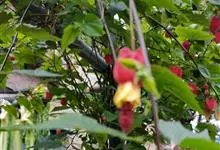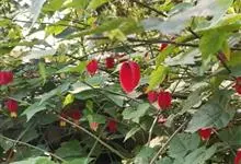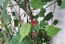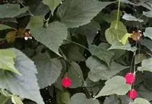 红萼苘麻是锦葵科、苘麻属常绿软木质灌木,叶绿色,长5-10厘米,心形,叶端尖,叶缘有钝锯齿,有时分裂,有细细的叶柄;叶互生,掌状叶脉;花单生于叶腋,具长梗,下垂;花萼红色,半套着大约4厘米长的花瓣,…全部>>