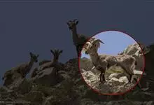 岩羊是偶蹄目牛科岩羊属哺乳动物。颜色与岩石相像,两性皆具角,雄羊角大而弯曲,角外表具不明显的横棱且体壮实,雌羊角短小;头较小,眼大,耳小,颏下无须;体背面为棕灰或石板灰色略有蓝色反光,…全部>>