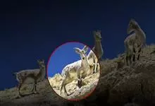 岩羊是偶蹄目牛科岩羊属哺乳动物。颜色与岩石相像,两性皆具角,雄羊角大而弯曲,角外表具不明显的横棱且体壮实,雌羊角短小;头较小,眼大,耳小,颏下无须;体背面为棕灰或石板灰色略有蓝色反光,…全部>>