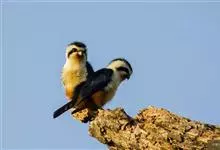 红腿小隼是隼形目隼科小隼属鸟类。红腿小隼前额白色,眼上有一宽阔的白色眉纹,往后经耳覆羽与上背白色领圈相连颊和耳覆羽白色,从眼前开始有一粗的黑色贯眼纹经眼斜向下到耳;其余上体包括翅和尾黑色,…全部>>