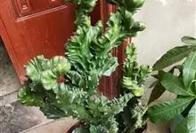 麒麟掌,是大戟科大戟属多年生植物。为金刚纂的带化变异变种。麒麟掌的株乳汁丰富;它的茎圆柱状,上部多分枝,绿色;叶互生,稀少,常生于嫩枝顶端脊上,倒卵形、倒卵状长圆形或匙形,顶端钝圆,具小凸尖,全缘,…全部>>
