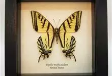 金凤蝶,是鳞翅目凤蝶科凤蝶属动物。金凤蝶为中型凤蝶,翅展70-84毫米,翅背面底色黑褐色,翅脉黑色,翅室具黄斑;前翅背面基部呈暗黄色,亚外缘为黑色,内具一列小黄斑;后翅背面亚外缘区具黑宽边,…全部>>