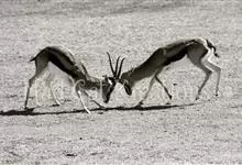 阿拉伯沙瞪羚:是偶蹄目、牛科、瞪羚属的食草动物。头尾长97厘米,身高约55-60厘米。雄性体重约为22千克,雌性性体重为18千克。雌雄都有犄角,雄性长达27厘米,雌性15厘米。体型较小。腿细长,…全部>>