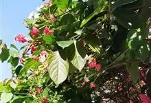 使君子 Jongkind)是使君子科、使君子属攀援灌木,叶对生,椭圆形,两面均被灰白色柔毛。穗状花序,倒挂下垂。花期夏秋。果有五棱,熟时黑色,种子白色。分布于印度、缅甸、菲律宾和中国。喜温润,深根性,…全部>>