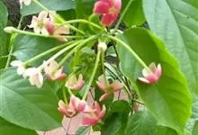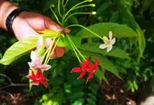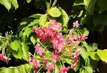 使君子 Jongkind)是使君子科、使君子属攀援灌木,叶对生,椭圆形,两面均被灰白色柔毛。穗状花序,倒挂下垂。花期夏秋。果有五棱,熟时黑色,种子白色。分布于印度、缅甸、菲律宾和中国。喜温润,深根性,…全部>>