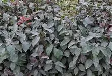 紫锦木是大戟科、大戟属的常绿乔木。叶圆卵形,主脉于两面明显,侧脉数对,边缘全缘,两面红色;花序生于二歧分枝的顶端,总苞阔钟状,裂片呈三角形,边缘具毛,腺体深绿色呈半圆形,…全部>>