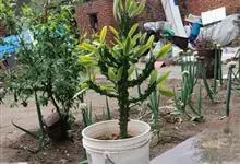 金刚纂,是大戟科大戟属的肉质灌木状小乔木。茎圆柱状,上部多分枝,叶片互生,少而稀疏,顶端钝圆,基部渐狭;花序二歧状腋生,苞叶膜质,总苞阔钟状,裂片半圆形,边缘具缘毛,雄花多枚;花期6-9月。…全部>>
