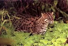 渔猫:是猫科、豹猫属的一种中等体型的食肉动物,体长65-85厘米,体重约为5千克。渔猫的头部较宽,吻部较长,耳朵又小又圆,耳背是黑色的,中间还点缀着明显的白斑。…全部>>