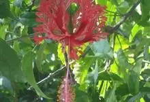 吊灯扶桑 Hook. f.)为锦葵科木槿属的常绿灌木。高达3米;小枝常下垂;叶椭圆形或长圆形,先端尖或短渐尖,基部楔形;花梗细,无毛或具纤毛,中部具节;蒴果长圆柱形;花期全年。因似灯笼高挂,…全部>>