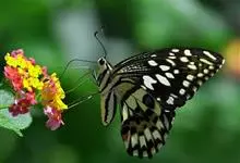 无尾凤蝶,Papilio demoleus ,鳞翅目凤蝶科凤蝶属的一个物种。展翅宽70~80mm。翅膀黑色,具不规则的米黄色斑;下翅有明显橙色斑,无尾状突起,无近似种。春至初夏最多,…全部>>