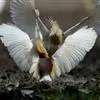 牛背鹭:体较肥胖,喙和颈较短粗。夏羽大都白色;头和颈橙黄色,前颈基部和背中央具羽枝分散成发状的橙黄色长形饰羽;前颈饰羽长达胸部,背部饰羽向后长达尾部,尾和其余体羽白色。冬羽通体全白色,个别头顶缀有黄色,…全部>>