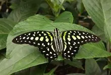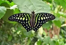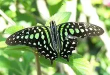 青带凤蝶Graphium sarpedon ,又名青凤蝶,是最普遍的中型凤蝶,飞行速度很快。青带凤蝶的翅膀中央有许多浅蓝色的斑点,很整齐地排列成一条直线。这些斑点由上而下逐渐变大,就像一条青色的带子。全部>>