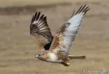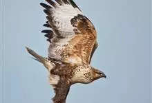 棕尾鵟:是鹰科鵟属的中大型猛禽,体长50-65厘米,体重1280克。成鸟头、颈棕褐色,上体褐色;第2-5枚初级飞羽外翈具横斑;下体棕白色;尾部棕褐色,与其他种类的鵟不同。飞行时,翅上举呈“V”形,…全部>>