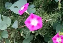 五爪金龙 Sweet),旋花科番薯属多年生缠绕草本植物。茎细长,有细棱;叶片为掌状;花冠紫红色、紫色或淡红色、偶有白色,漏斗状;蒴果近球形。花期5~12月。五爪金龙的叶子类似掌状,有5至7个裂痕,…全部>>