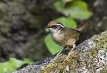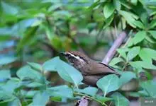 褐胁雀鹛,是莺科、雀鹛属的鸟类。褐胁雀鹛是小型鸟类,体长13-15厘米。头顶棕褐色,黑色侧冠纹和宽阔的白色眉纹,眼先黑色。上体包括两翅和尾橄榄褐色。颏、喉、胸、腹白色,腹和胸沾皮黄色,两胁橄榄褐色,…全部>>