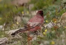 藏朱雀:全长约17-18厘米。雄鸟头部深红色具光辉,喉部暗红色具白色点斑;背部灰白色,各羽具玫瑰红色羽端,形成许多斑纹;腰部淡玫瑰红色;翅暗褐色,沾灰白,羽端沾玫瑰红或灰白色;尾暗棕色,端缘玫瑰红色…全部>>