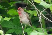 普通朱雀是雀形目雀科朱雀属鸟类,又名红朱雀、马料、青麻料。雄鸟上体红色,下体淡红色;头部、喉部、胸部及腰部亮红色;背部褐色染红色;两翼及尾黑褐色,羽缘染红色。雌鸟上体橄榄褐色,下体近白色,…全部>>