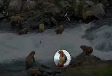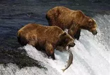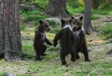 棕熊是熊科熊属哺乳动物。体形健硕,肩背隆起,身后长有一条短尾。毛色多为棕褐色或棕黄色;老年呈银灰色;幼年为棕黑色。野生条件下寿命为20—30年。棕熊分布广泛,主要分布在欧亚大陆和北美,…全部>>