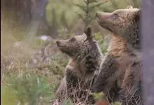 棕熊是熊科熊属哺乳动物。体形健硕,肩背隆起,身后长有一条短尾。毛色多为棕褐色或棕黄色;老年呈银灰色;幼年为棕黑色。野生条件下寿命为20—30年。棕熊分布广泛,主要分布在欧亚大陆和北美,…全部>>