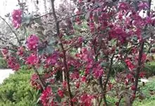 北美海棠是蔷薇科苹果属落叶小乔木。株高一般在5-7米,呈圆丘状,或着整株直立呈垂枝状;树干颜色为新干棕红色,黄绿色,老干灰棕色,有光泽;分枝互生直立悬垂等无弯曲枝;花量大颜色多,…全部>>