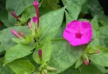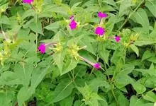 即紫茉莉,英文名:Four-o'clock,Marvel of Peru,为紫茉莉科、紫茉莉属多年生草本植物,一年生栽培。株高50~80cm。根粗壮,茎多分枝而散生。叶对生,卵形或心脏形。花数朵簇生…全部>>
