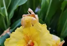 粉美人蕉:是一种球根草本植物。根茎延长,株高1.5-2米;茎绿色。叶片披针形;总状花序疏花,单生或分叉,稍高出叶上;苞片圆形,褐色,花黄色,无斑点;有多种园艺栽培品种,颜色从粉、橙红色及具带红色斑点…全部>>