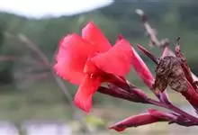 美人蕉,属美人蕉科美人蕉属的多年生草本植物。全株绿色没有毛,被蜡质白粉;根为具块状;地上的枝丛生,叶片为卵状长圆形;花单生或对生;萼片为绿白色,先端带红色;花冠为红色,…全部>>