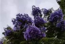 蓝花楹是紫葳科蓝花楹属的落叶乔木,叶对生,小叶椭圆状披针形至椭圆状菱形,顶端急尖,基部楔形;花蓝色,花萼筒状,花冠筒细长,蓝色,裂片圆形;朔果木质,扁卵圆形;花期5-6月。原产于南美洲巴西,…全部>>