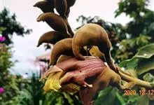 十字架树是紫葳科、葫芦树属小灌木,高3-6米。叶簇生于小枝上;小叶长倒披针形至倒匙形,几无柄,叶柄具阔翅。花1-2朵生于小枝或老茎上;花梗长约1厘米。花萼淡紫色。花冠褐色,具有紫褐色脉纹,近钟状,具…全部>>