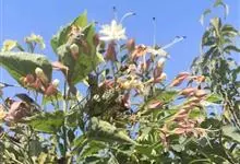 海州常山是唇形科大青属的灌木或小乔木。幼枝、叶柄、花序轴等被黄褐色柔毛或近于无毛,有淡黄色薄片状横隔;叶片纸质,卵形、卵状椭圆形或三角状卵形,顶端渐尖,基部宽楔形至截形,两面幼时被白色短柔毛,…全部>>